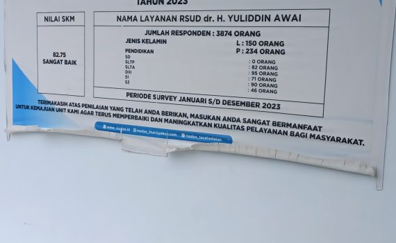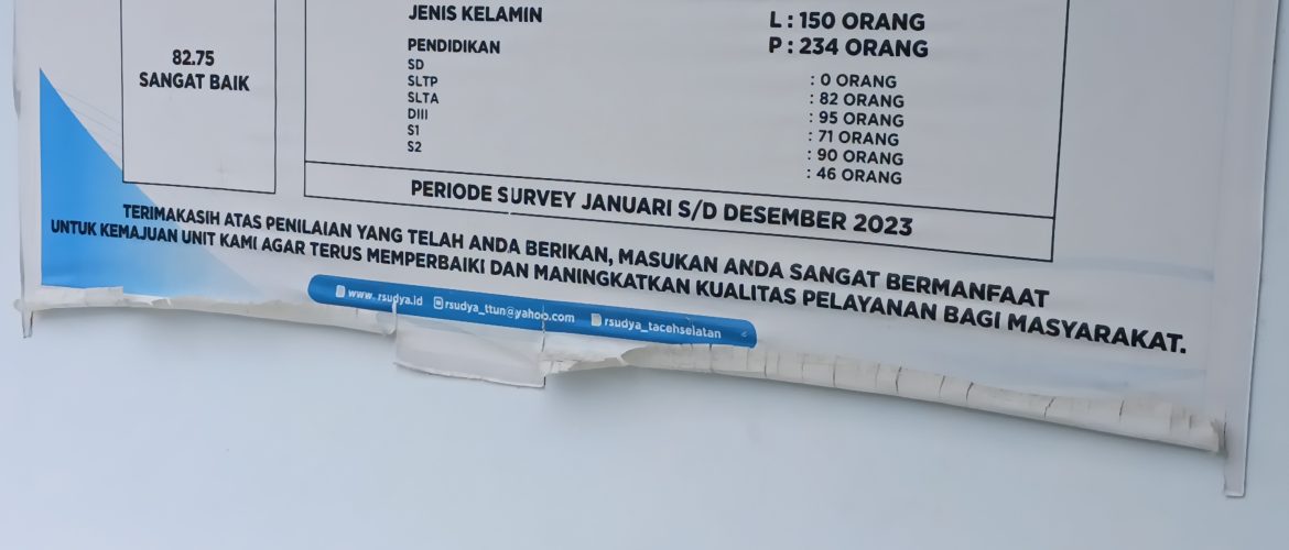 Tapaktuan — Keberadaan banner Survei Kepuasan Masyarakat (SKM) Tahun 2023 yang terpasang di area publik RSUD dr. H. Yuliddin Away Tapaktuan hingga tahun 2025 menuai perhatian masyarakat. Selain karena datanya sudah tidak mutakhir, banner tersebut juga diketahui memuat ketidaksesuaian penulisan jumlah responden. Dalam banner tersebut tertulis jumlah responden sebanyak 3.874 […]